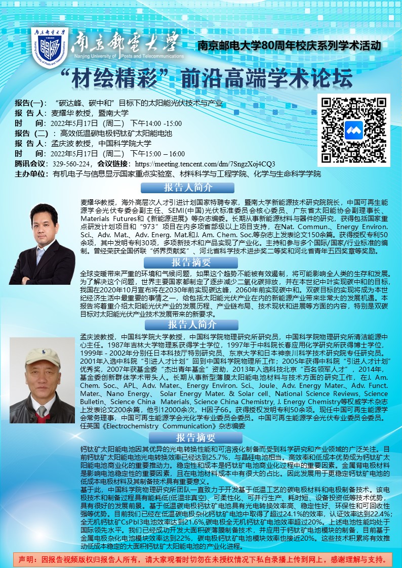 暨南大学麦耀华教授&中国科学院大学孟庆波教授学术报告