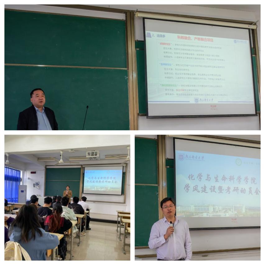 会上,王霁主任结合材料、化学学科的特点向同学们详细介绍了集团研究生招生情况与研究生教育成果,通过图表将近几年全国与本校的考研报考与录取人数趋势等数据信息进行了讲解,让同学们更加直观的感受当前的考研形势,更加明确了考研院校和专业的选择。苏邵副经理围绕考研的意义、动机及未来发展等方面展开讲解,对研究生生活的进行了细致描绘,激励同学们坚定信心,为考上理想院校而努力奋斗。张建平副书记分析了学院2019级考研录取情况以及考研可能会遇到的常见问题,呼吁大家合理定位,明确目标,理性选择,科学备考。