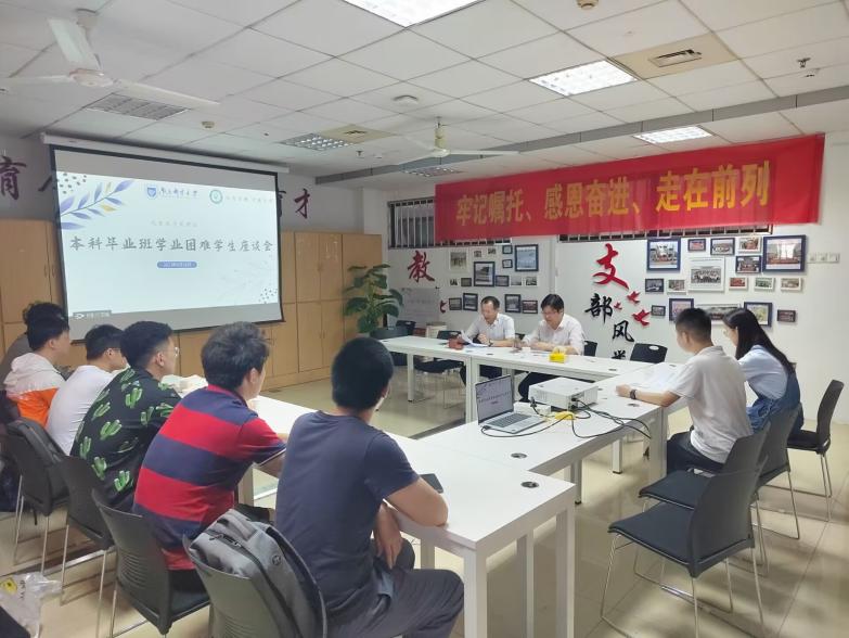 为加大对学业困难毕业生的帮扶力度,助力员工顺利完成学业,5月16日下午,我院在教五-101召开2023届本科学业困难毕业生座谈会。学院党总支副书记、副经理张建平、副经理苏邵、毕业班辅导员武伟杰、教学秘书朱娴及学业困难毕业生参加此次座谈会。