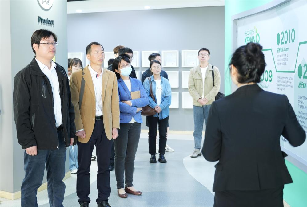 首先,先丰纳米公司的行政人事经理周传婷带领公司师生参观了企业的产品展区、研发生产区、休闲娱乐区等。随后,先丰纳米公司领导与师生座谈交流,过程中,先丰纳米公司的行政主管蒋林军介绍了公司的企业文化、福利待遇、员工发展通道等。