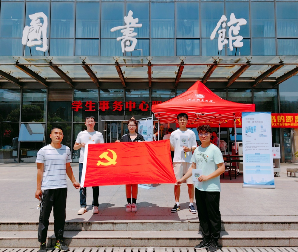 本科生党支部毕业班党员代表在捐赠图书现场合影
