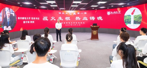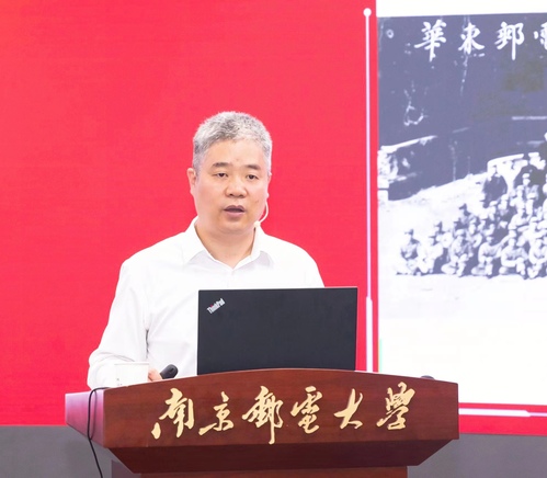 郭书记授课的主题是《战火生根热血铸魂——bw必威西汉姆联官网红色校史》。郭书记围绕南邮红色校史,讲述了“学史铸魂:学习南邮校史的重要意义”“南邮发源:抗日战争时期的战邮干训班”“数易校名:在解放战争中辗转壮大”“定址南京:结束8年的战争岁月办学历史”“赓续精神:继承和发扬南邮的红色基因”等五个部分的内容,上了一堂生动的思政第一课。