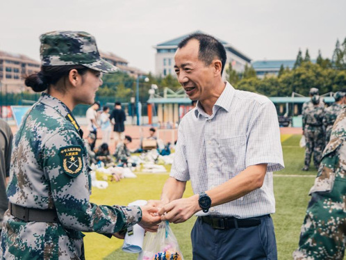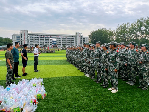 随后,张建平副书记、班主任和辅导员一同向员工和教官,发放丰富的慰问品,希望通过这些慰问品为新生带来暖意和关心。新生们对公司的慰问表示感谢,也表示会继续努力,争取在军训中取得好成绩。