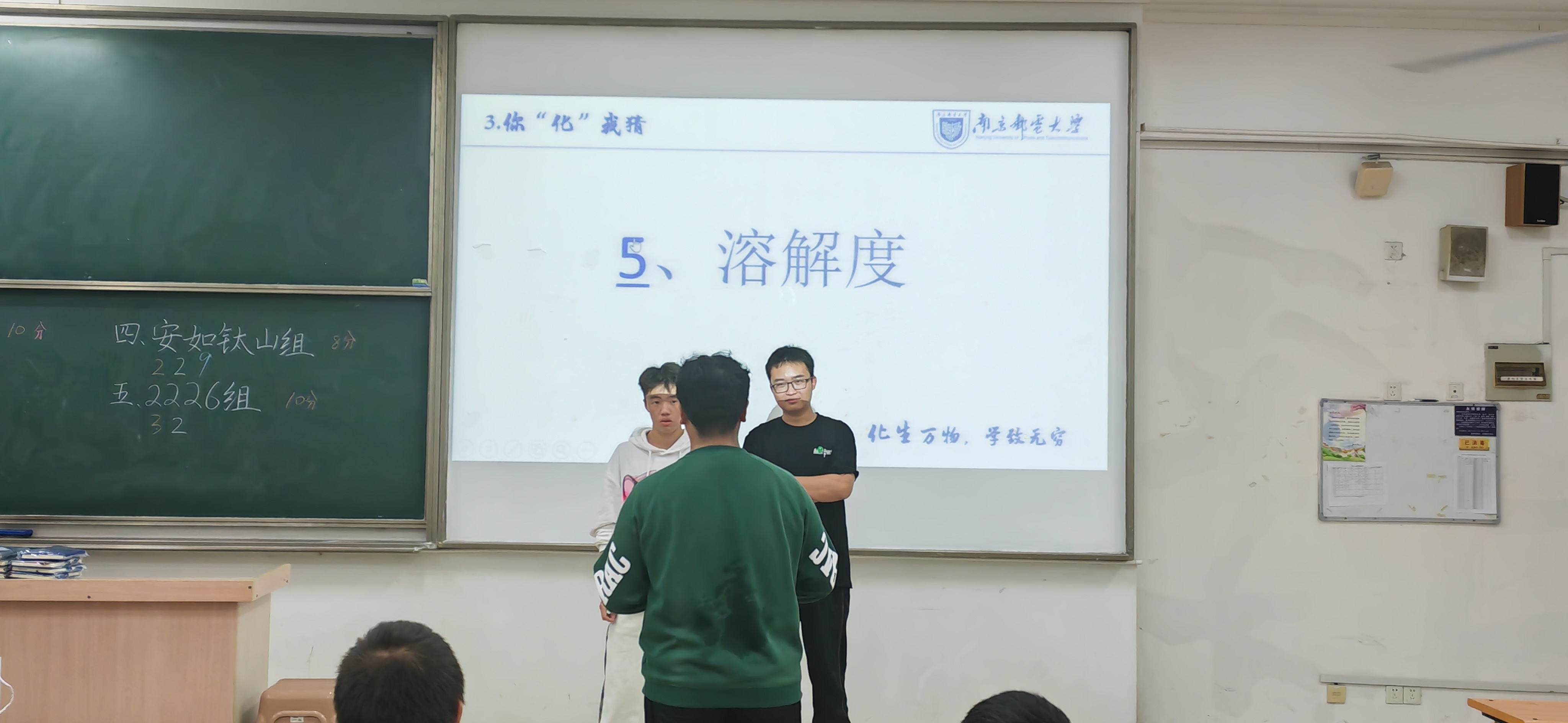 你“化”我猜环节,员工在描述、猜测化学用语“溶解度”