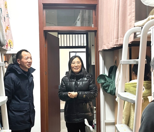 在走访中,张建平副书记、武灵芝老师详细了解了研究生们的宿舍住宿情况、卫生整洁状况并关心的询问同学们在生活中是否存在困难等。同时,他们耐心倾听了同学们反映的意见和建议,对相关问题当场做出解答或是认真记录并向有关部门进行反馈和跟进。最后,张建平副书记向同学们强调道,近期冰雪融化,同学们一定要注意出行安全,同时,采取在宿舍内采取适当的方式保暖,注意用电安全,严禁使用违章电器。