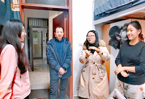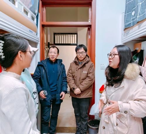 走访中,乔书记首先关心同学们的住宿情况,关切地提醒同学们在近期温度较低的情况下要注意采取适当的方式保暖、注意合理的饮食和起居。