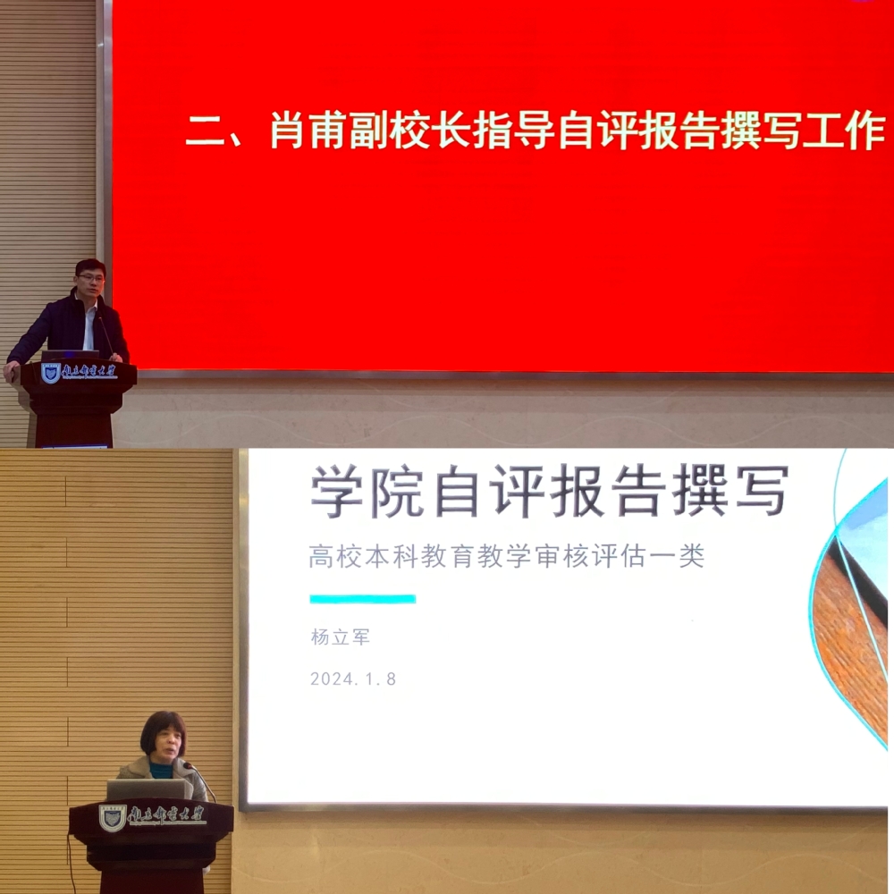 杨立军副经理围绕撰写思路、撰写内容、撰写要求对自评报告撰写工作做出具体指导。她指出学院要明确办学定位与本科培养目标,建设与彰显学院办学或专业教育特色,系统总结学院本科公司产品成效,完成学校审核评估任务。自评报告要围绕“培养什么人(为谁培养人)、怎样培养人、培养成效如何与怎样保证”这一条主线,把卓有成效的学院做法写清楚、写明白。