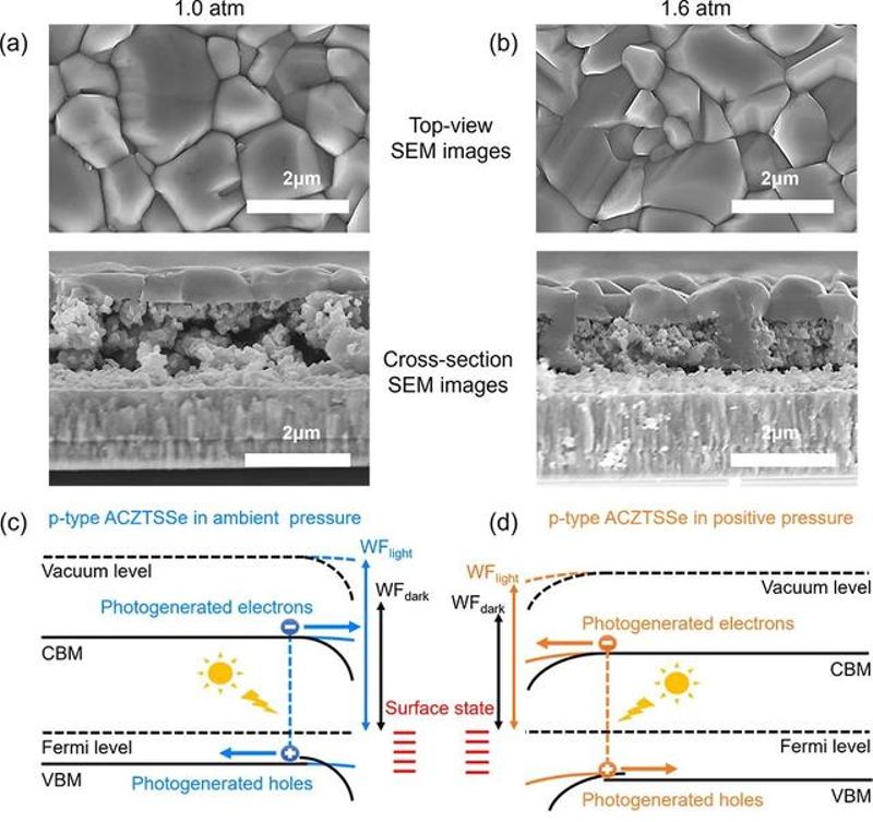 该论文聚焦于高质量铜锌锡硫硒晶体薄膜的制备,从硒化动力学角度出发,通过调节腔室压强来改变半封闭石墨盒中的硒化反应速率,进而调节铜锌锡硫硒薄膜的相演变过程。获得了晶体质量高、内部孔洞少、表面缺陷浓度显著降低的银替位CZTSSe(ACZTSSe)吸收层,实现了全面积14.1%效率(认证全面积13.8%)的器件效率。这项工作为进一步理解和调控铜锌锡硫硒相演变过程提供了一种动力学调控思路,也为其他类型多晶薄膜生长制备提供借鉴意义。