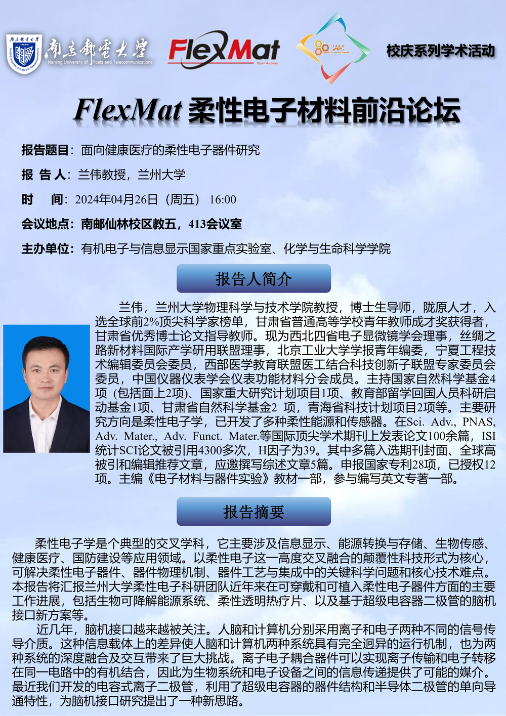兰州大学兰伟教授学术报告