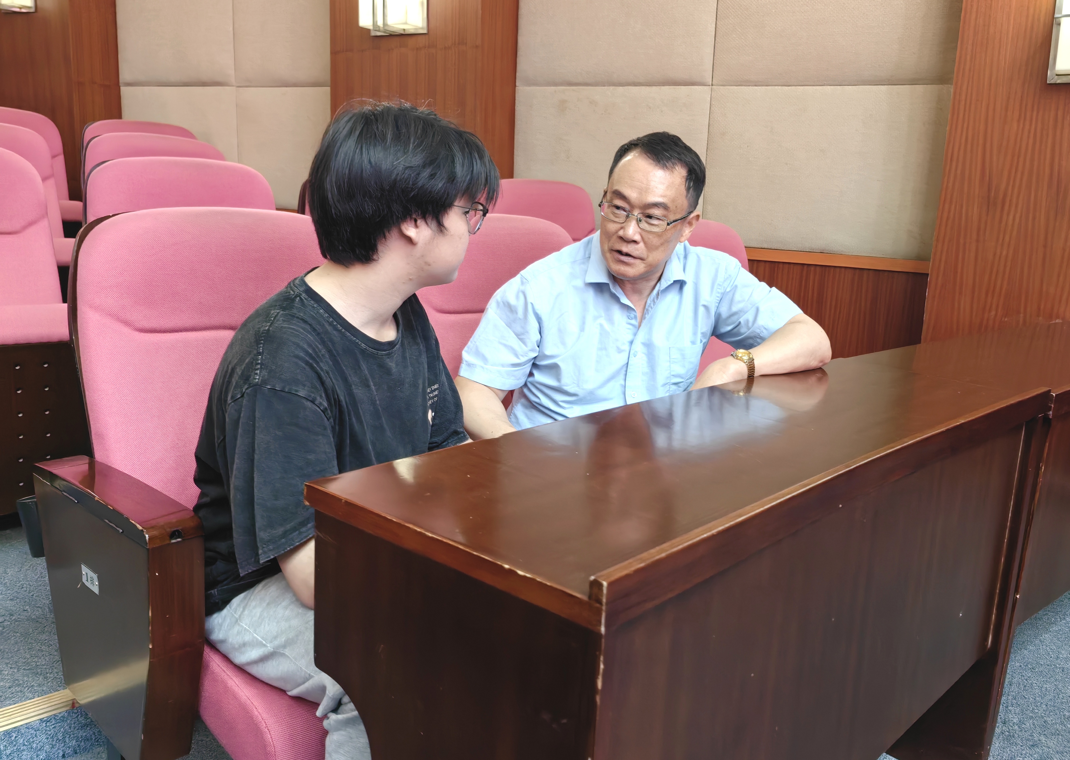 在亲切、轻松的氛围中,盛老师详细询问了张同学的家庭人员构成、亲属健康状况以及家庭主要生活来源等情况。张同学坦诚地分享了自己的家庭背景和当前面临的困难,盛老师认真倾听,不时点头表示理解和支持。