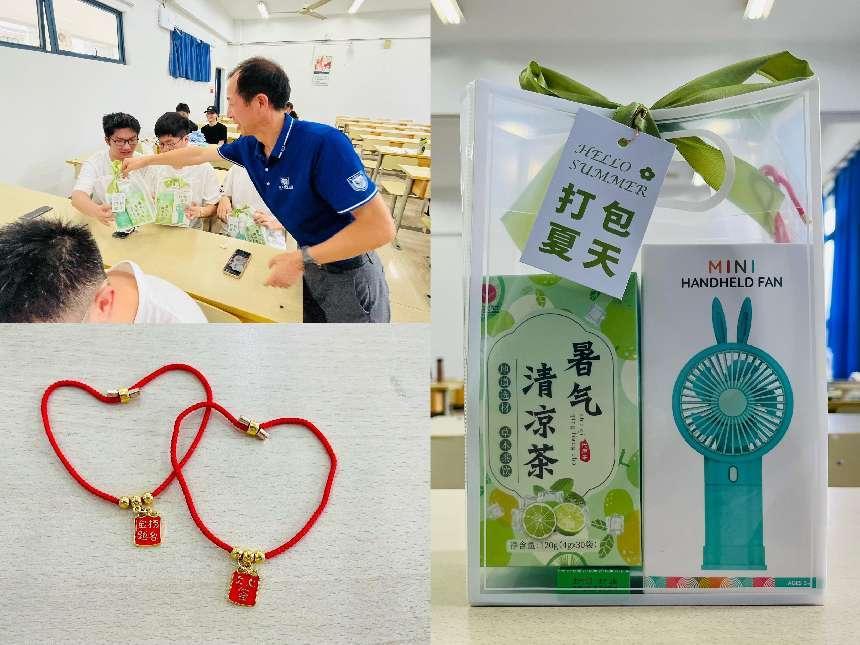 交流慰问会尾声,张书记现场为考研学子们送上了慰问礼品—— “一战成硕”手工编织红绳、“打包夏天”酷暑清凉礼包,希望同学们以梦为马,不负韶华,在炎夏不燥热,未来上考场题题十拿九稳。
