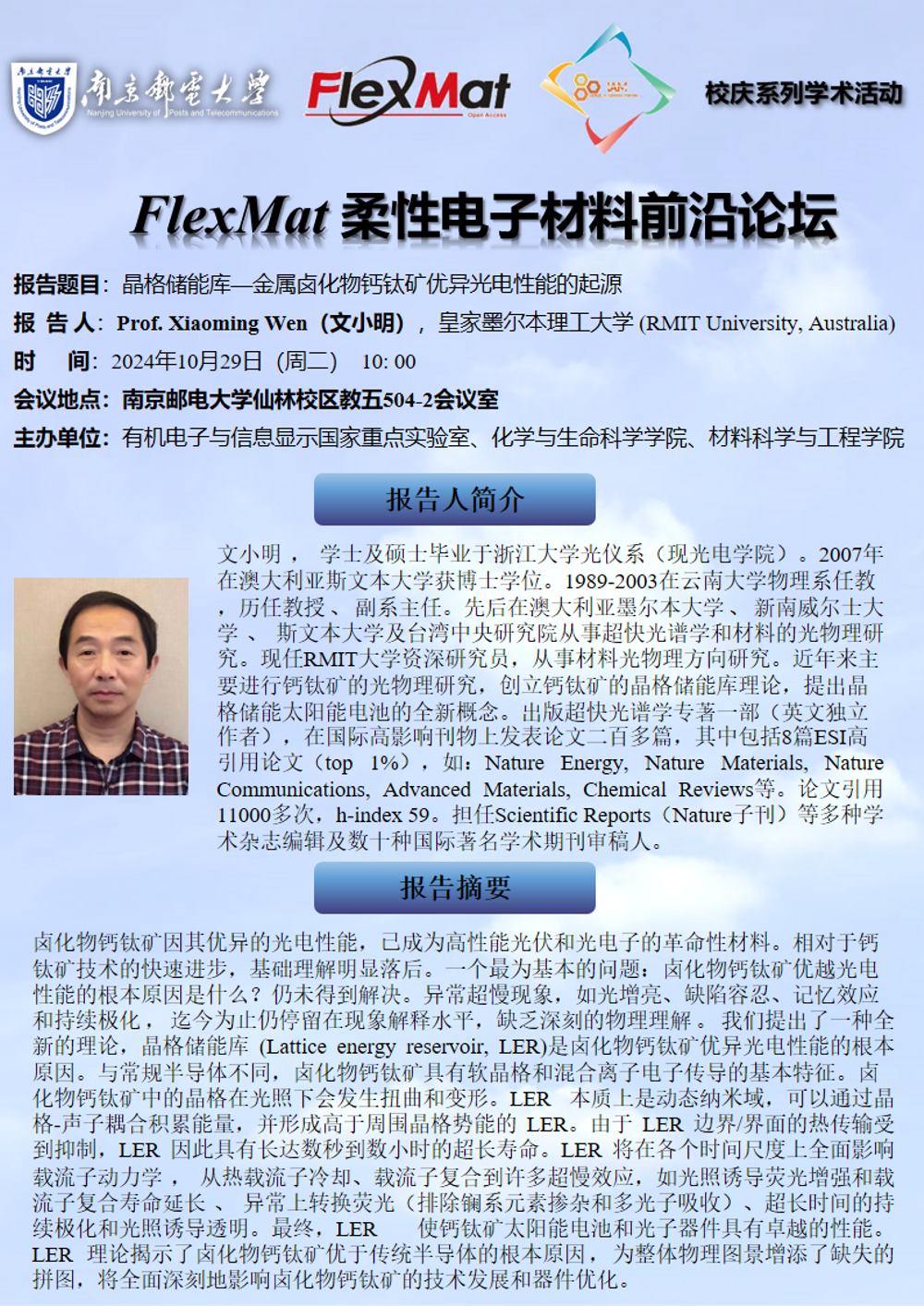 皇家墨尔本理工大学Prof. Xiaoming Wen学术报告