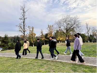 当日,微风拂面,空气中弥漫着秋日独有的馥郁气息,为游园会拉开了惬意序幕。踏入龟山公园,全员沿着蜿蜒小径徐徐前行,时而俯身细赏路旁不知名小花,惊叹于自然雕琢的精致细节;时而仰头凝视枝头色泽明艳的枫叶,感慨生命的饱满丰饶。欢声笑语此起彼伏,打破了山林往日的静谧,为清幽公园注入别样活力。
