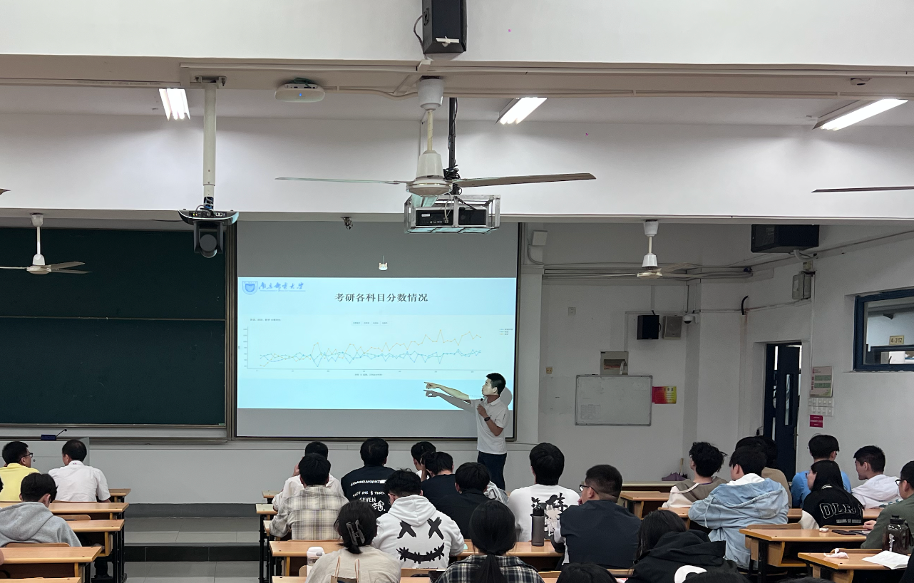 数据赋能,科学备考。辅导员武伟杰以详实的数据为支撑,多维度解析考研形势。他通过科学统计近年升学率、录取分数分布、考研科目分数分布、复试通过率及调剂意愿等关键指标,为同学们勾勒出清晰的考研图景。此外,他还结合同学们的每日学习时长、学分绩点与考研成绩的关联性、寝室学习氛围对备考的影响等实证分析,提出理智规划、创造环境、高效复习的备考策略,鼓励员工以数据为镜,脚踏实地制定个性化目标并为之奋斗。