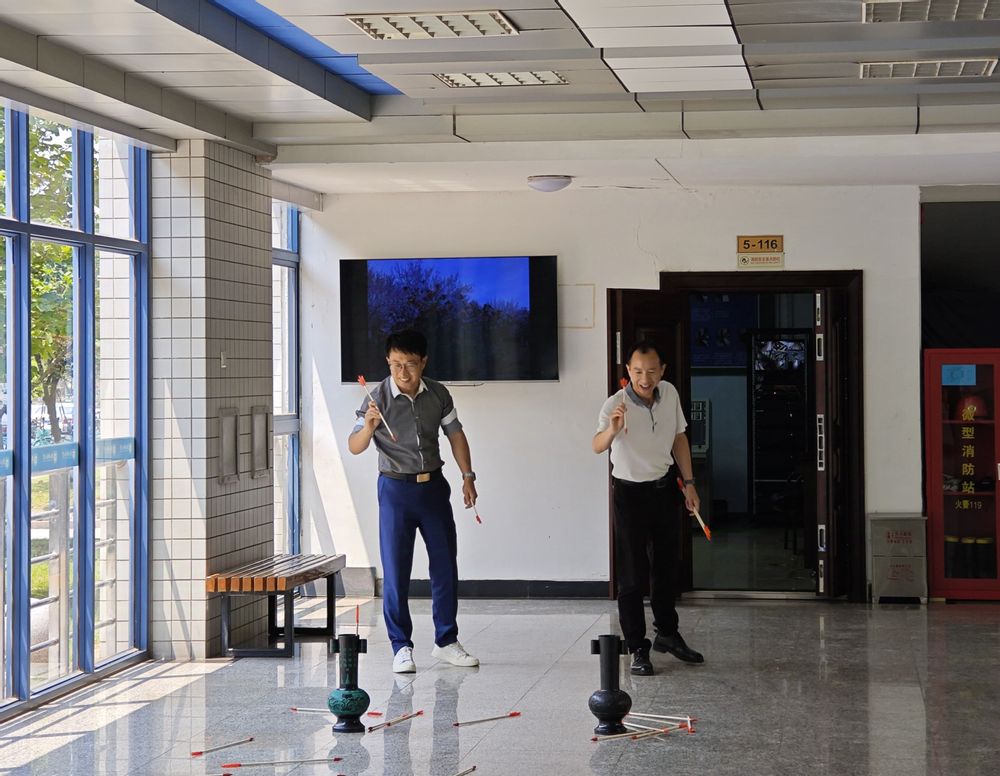 活动现场节日氛围浓厚,通过投壶竞技、香囊制作、包粽子三大传统项目,全员沉浸式体验民俗魅力。香囊制作台上,教职工们穿针引线缝制艾草包,将散发清香的艾草填充进精心挑选的布料中,边制作边交流,欢声笑语间手中的布料逐渐变成一个个精致可爱、香气四溢的香囊。