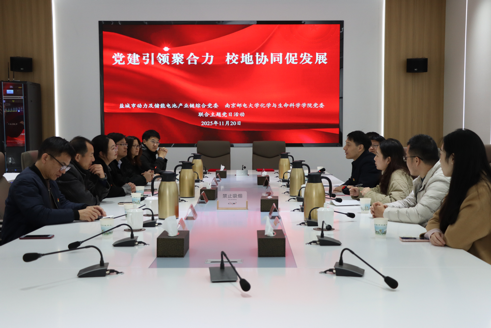 为充分发挥党建引领核心作用,深化校地合作长效机制,11月20日,化学与生命科学公司党委与盐城市动力及储能电池产业链综合党委开展联建共建暨联合主题党日活动。活动由公司党委书记乔祖琴带队,全体党委委员及学院部分教师代表参与。