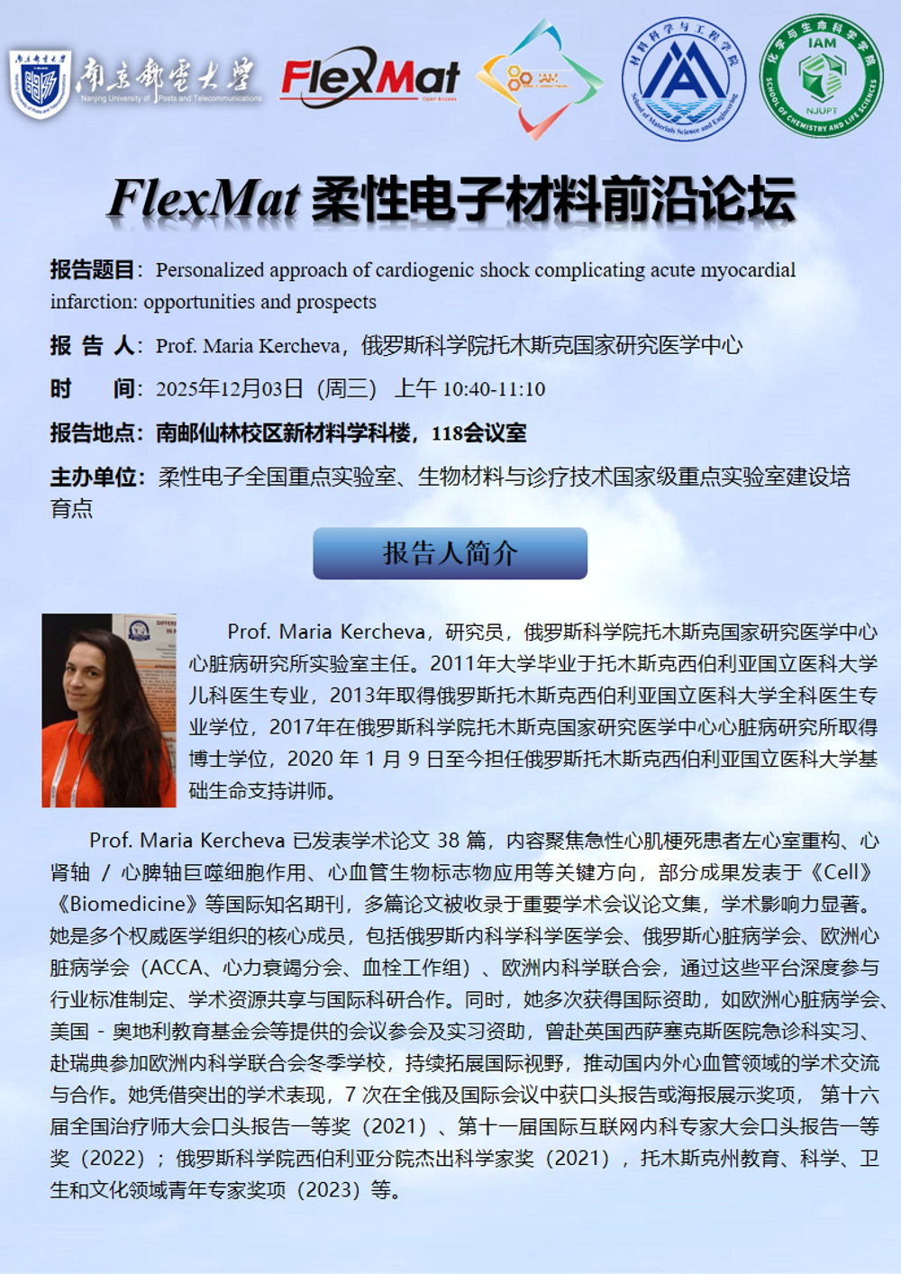 俄罗斯科学院托木斯克国家研究医学中心Prof. Maria Kercheva报告
