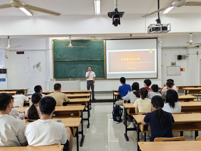 活动伊始,张建平以“为何读研”“如何读研”“研究生与本科生的区别”三个问题切入,引发新生热烈讨论。在师生互动中,他强调读研不仅是知识深造,更是思维重构与人格淬炼的过程,要求同学们跳出“本科惯性”,以批判性思维突破认知边界。