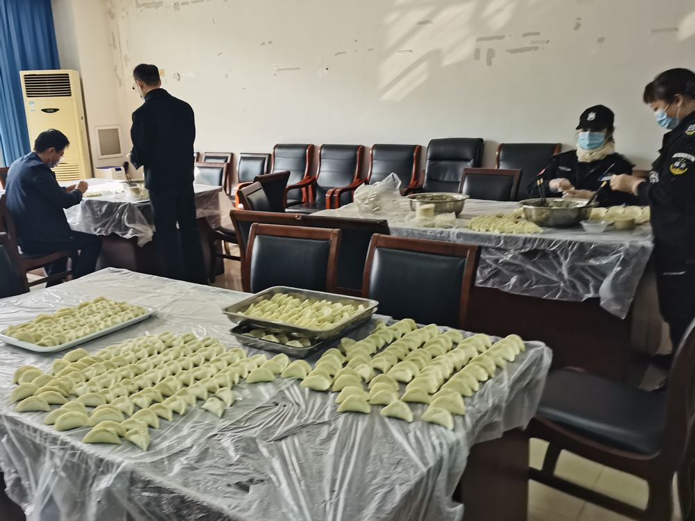 活动现场老师们包饺子